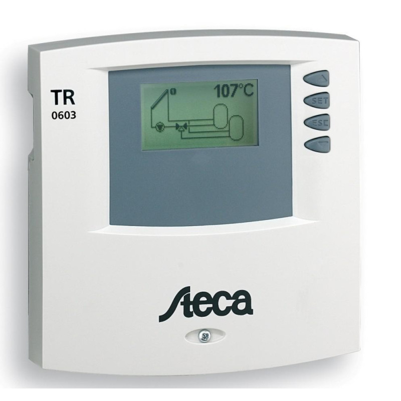 Acest model are 6 intrari (senzori) si 3 iesiri (comanzi) si poate asista un camp de panouri si 1,2 sau 3 boilere, sau temperatura apei de la o piscina. Cu multiple functiuni pentru instalatiile solare, Steca 603 are 18 programe standard care pot fi activate in functie de tipul de utilizare. Cu Steca 603 poate rezolva problema caselor care au acoperisul orientat E -V (foto). Temperatura maxima a apei din boiler se poate seta cu usurinta. Functiunea de VACANTA protejeaza instalatia solara la supra incalzire, racind in timpul noptii apa din boiler, cand functiunea este activata. Functiunea ANTI INGHET face ca instalatia solara sa porneasca la un anume interval de timp cand temperatura la panoul solar este sub 0°C. Automatizarea STECA 603 are display animat. Instructiuni de folosinta in limba Romana.