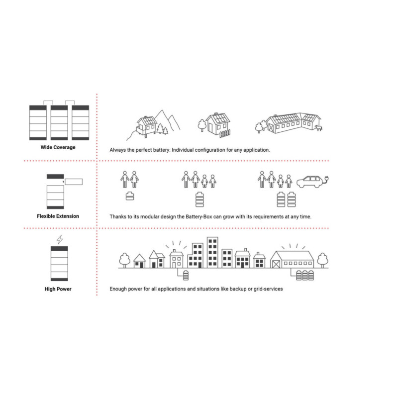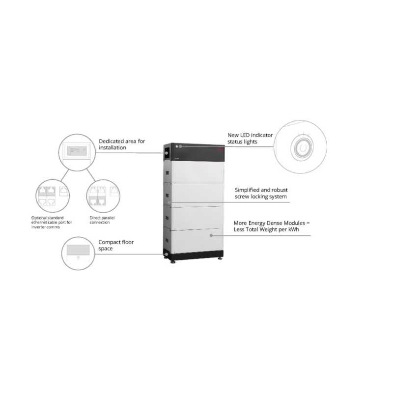Cu o capacitate extensibilă mai mare pentru sistemele care necesită mai multă acumulare, protecția IP55 și conexiunile fără fir la vedere reprezintă un salt calitativ mare. Modulele oferă densitate mai mare și greutate mai mică la capacitate energetică egală. Bateriile cu litiu BYD sunt potrivite pentru un consum izolat și cu autoconsum în rețea, această baterie cu litiu 48V BYD B-Box Premium LVS 3.8kWh este compatibilă cu invertoarele SMA și SolarEdge, printre alți producători.