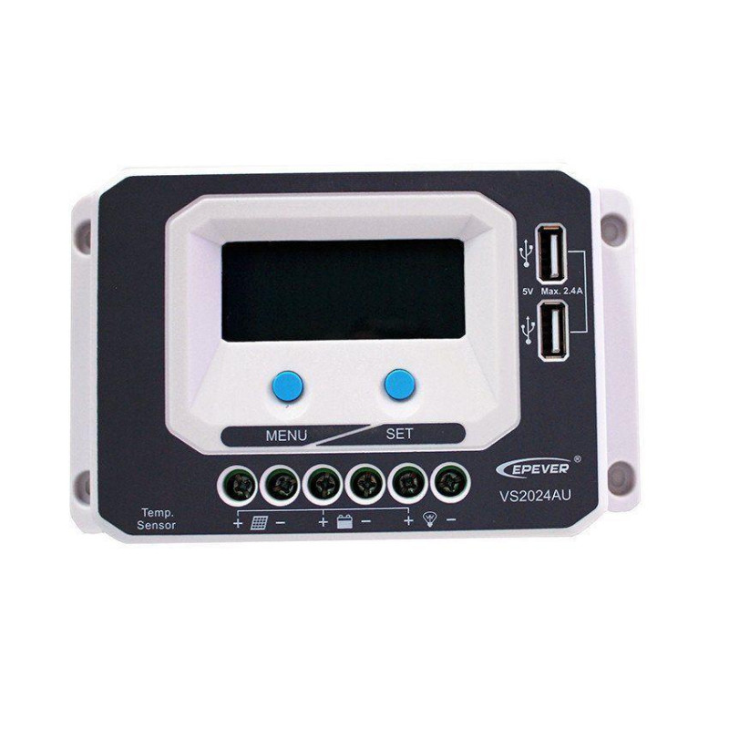 Controler solar pwm 20A si 24V este un aparat pentru incarcarea bateriilor la o instalatie fotovoltaica. Acest produs face parte din gama incarcatoarelor noi cu simbolul de serie VS-AU. Regulatorul VS2024AU este un controler de incarcare comuna PWM, construit cu display LCD si cu doua USBport de 2,4A. Aparatul are mai multe moduri de control al incarcarii care permite ca acest controler sa poata fi utilizat pe scara larga in sistemele solare fotovoltaice cu baterii. Utilizarea instalatiilor fotovoltaice va ofera confort atat acasa cat si in alte aplicatii cum ar fi: semnal de trafic, iluminaresolara stradala, lampi solare de gradina etc.