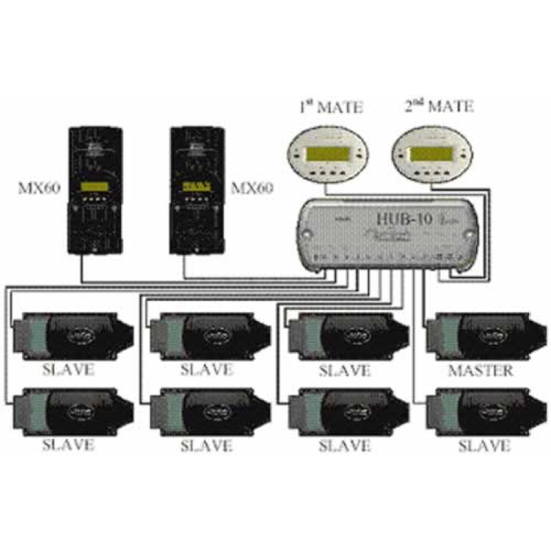 Un singur OutBack MATE este capabil sa se conecteze la mai multe unitati FX2000, MX60 MPPT, si orice unitate OutBack de conversie de energie sau de control disponibil in viitor. Un maxim de zece unitati OutBack vor fi posibil de conectat la un singur MATE printr-un cablu de retea de tip ethernet CAT 5 cu conector modular RJ-45 cu 8 fire si un OutBack HUB pentru managementul comunicatiilor.